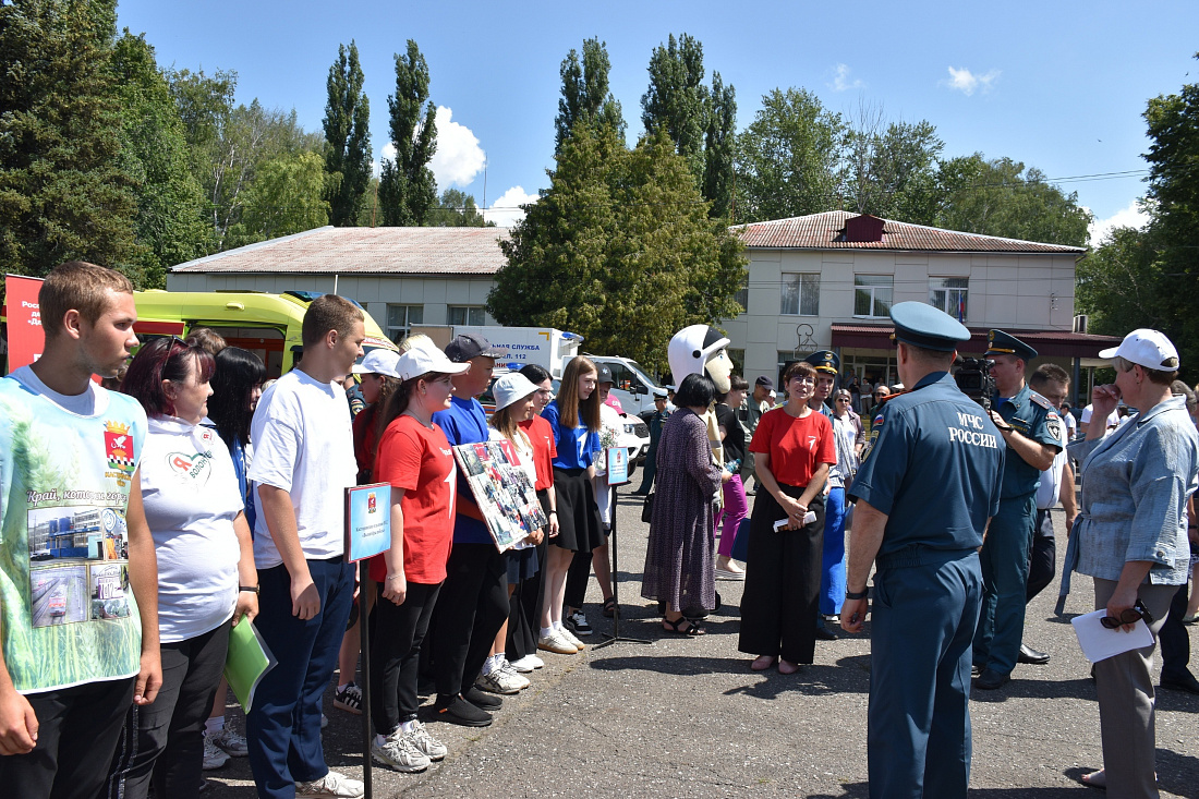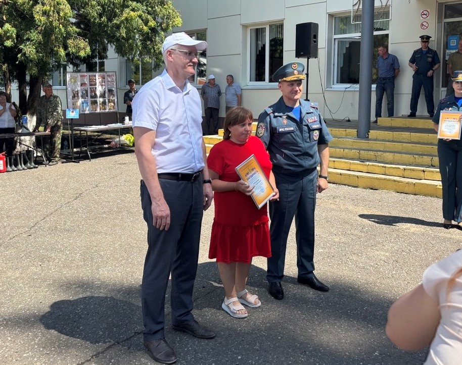Начальник Главного управления МЧС России по Курской области. генерал-майор внутренней службы Иван Лунёв провел церемонию награждения представителей муниципальных образований, общественных объединений и организаций, внесших вклад в обеспечение безопасности. За активную работу по обеспечению безопасности населения и территории Курской области награждена социальный работник Центра - Ольга Сорокина.