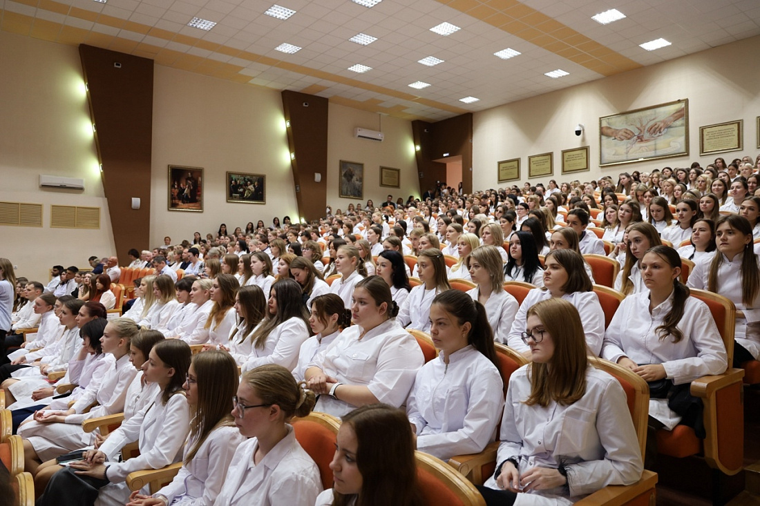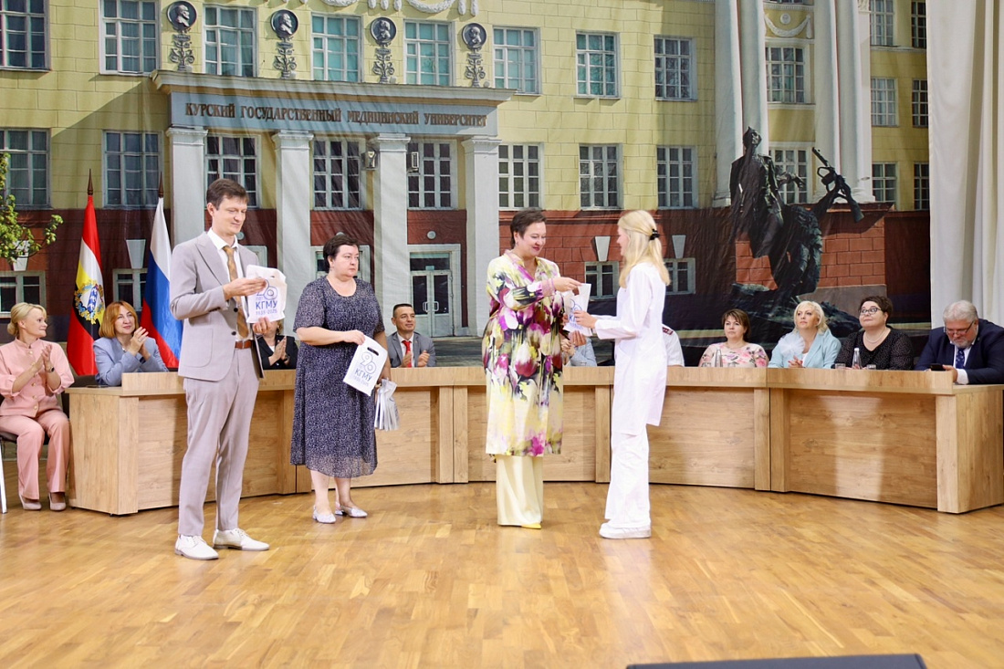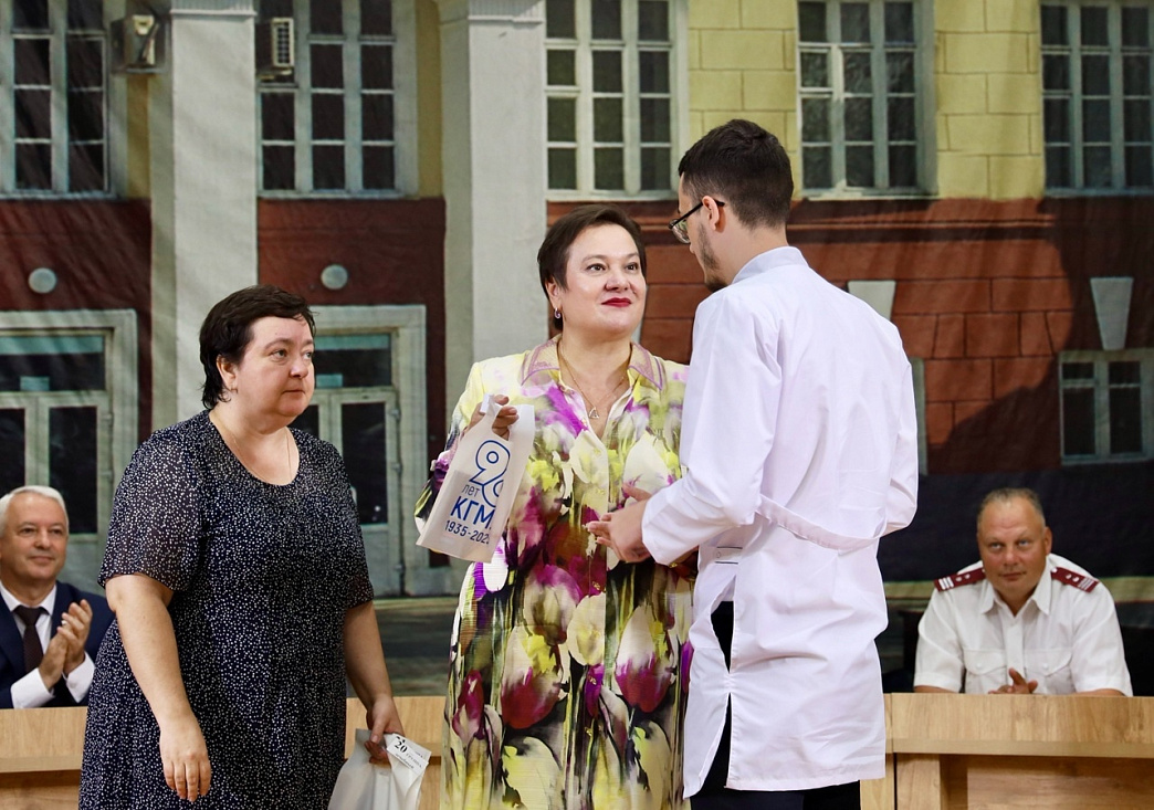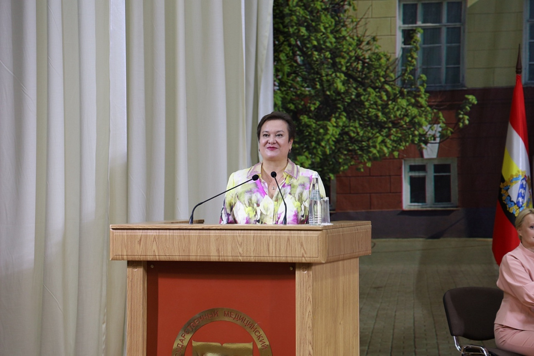 Врио министра социального обеспечения, материнства и детства Курской области Татьяна Сукновалова вместе с коллегами из регионального Правительства приняла участие в торжественном мероприятии, посвященном Дню знаний в Курском государственном медицинском университете, где поздравила первокурсников и вручила им студенческие билеты .